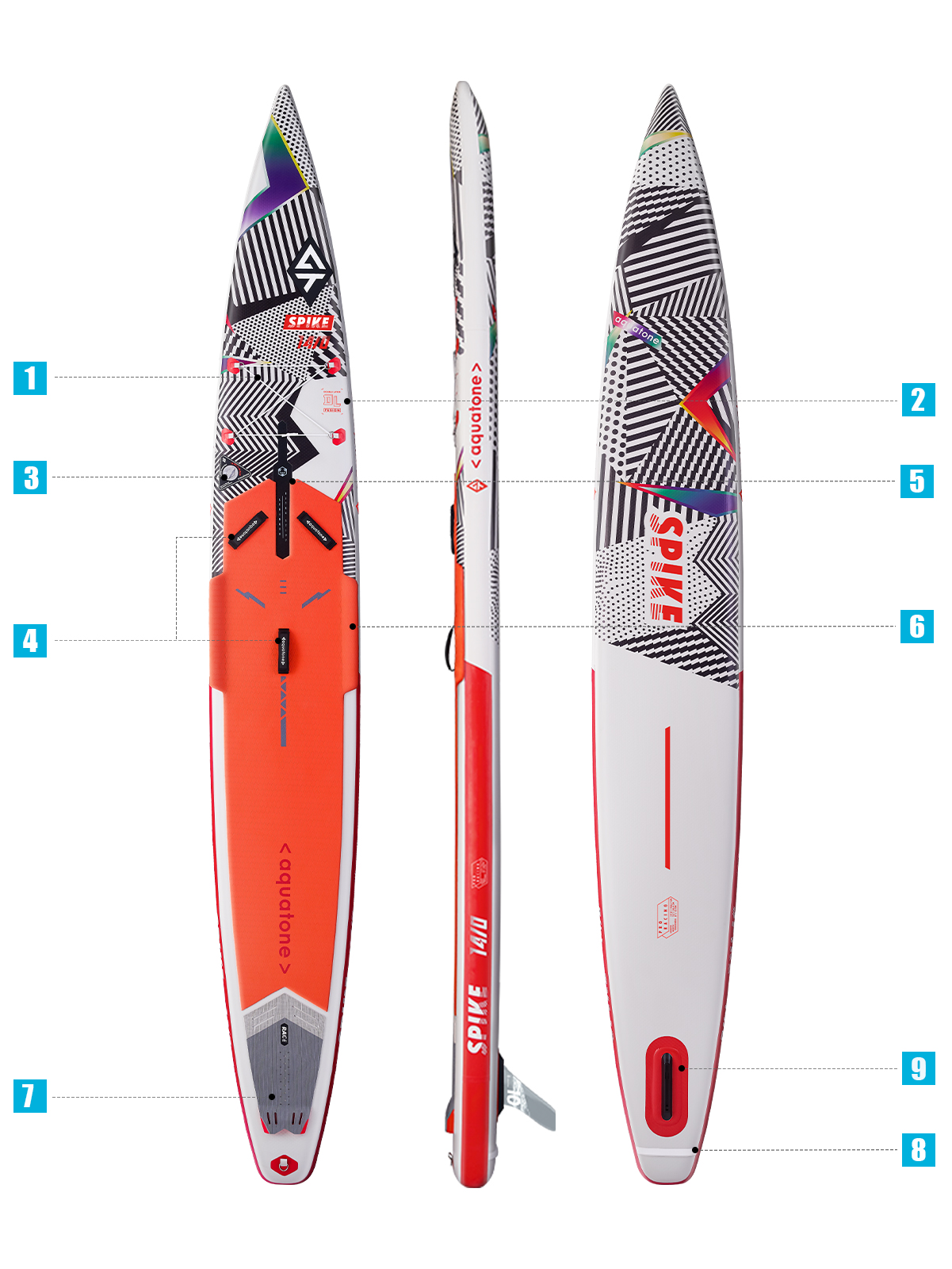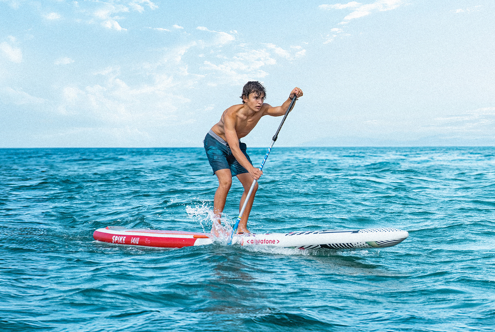 THE NEW SPIKE SUP COMBINES LENGTH, COMPETITIVE NARROW OUTLINE AND LOW ROCKER FOR ADDED WATER LENGTH AND LESS DRAG. UNCOMPROMISING SPEED AND AGILITY FOR THE EXPERIENCED RIDERS.
