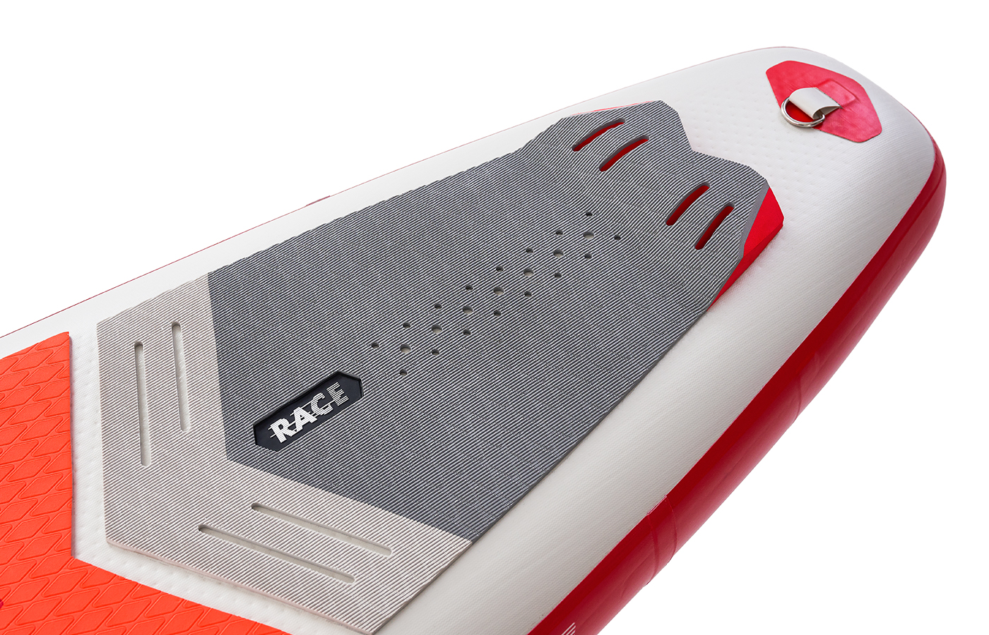 THE ADVANCED DOUBLE LAYER FUSION DROP-STITCH MATERIAL IS APPLIED ON OUR PRO RACE SUP. FEATURING THE TOP AND BOTTOM OF THE BOARD WITH SECOND LAYER FUSED PVC. RESULT OF 20% OF WEIGHT REDUCTION COMBINED WITH 25-30% INCREASED STIFFNESS.